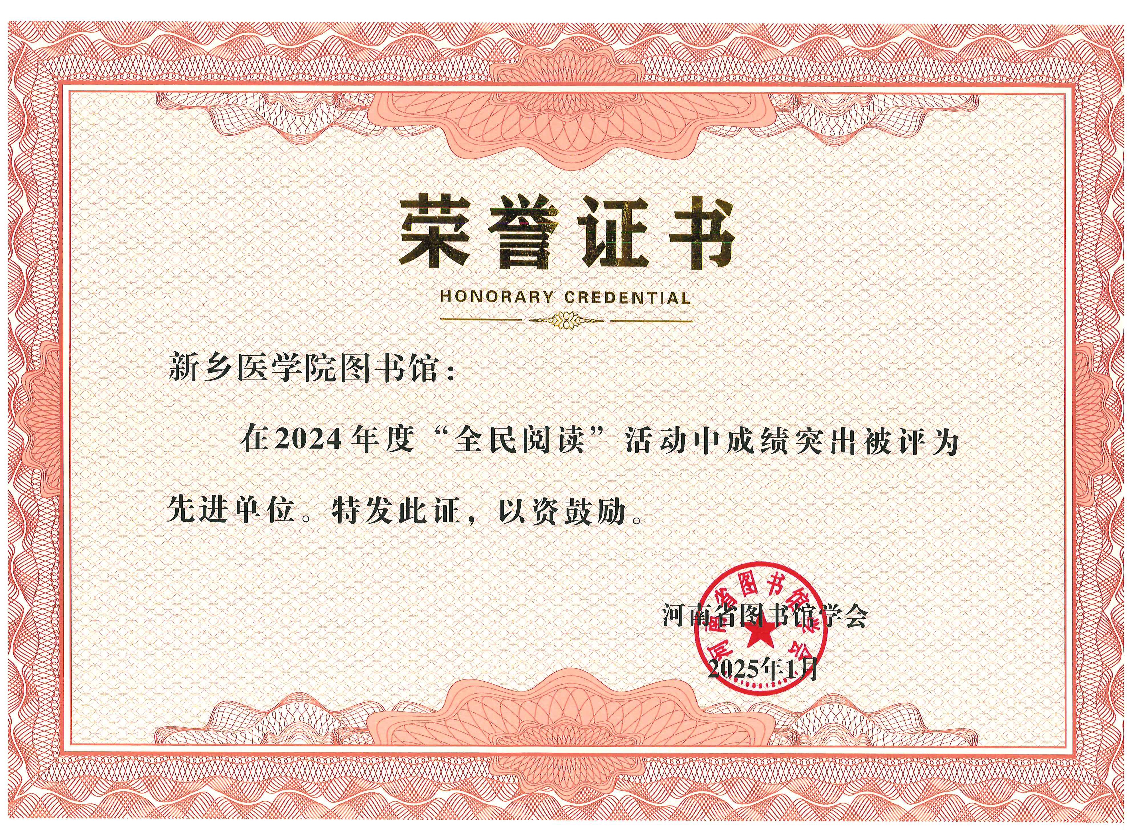 近日, 河南省图书馆学会下发《关于表彰2024年度“全民阅读”活动先进单位和先进个人的通知》,我校图书馆荣获2024年度“全民阅读”活动先进单位称号,班亚平荣获2024年度“全民阅读”活动先进个人称号。