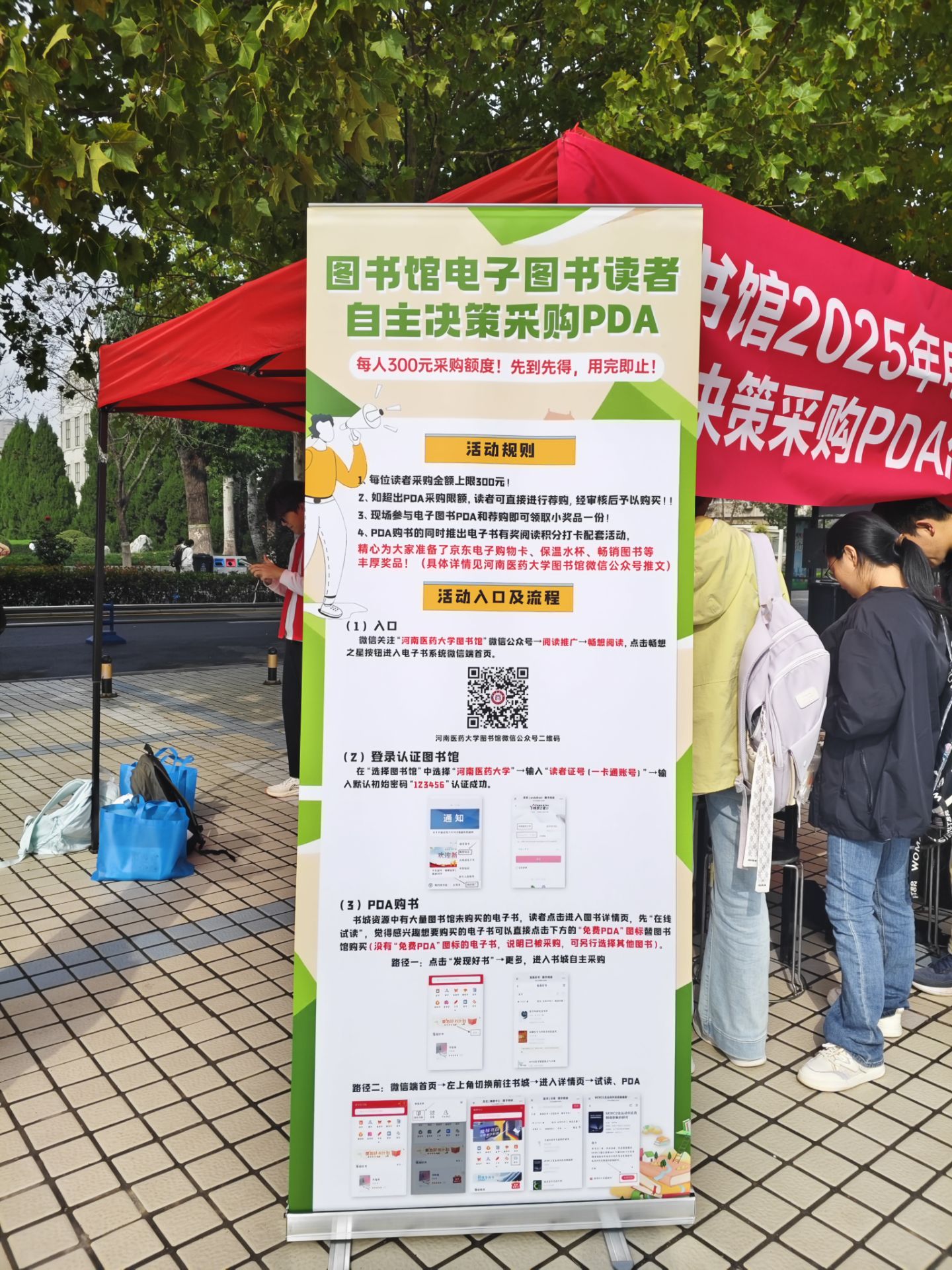 为进一步提升图书馆服务师生理念,创新服务手段,让广大师生读者更加深入了解PDA读者决策采购模式,确保每本电子图书精准匹配每位师生读者的个性化需求,10月15日,我校图书馆再次携手北京畅想之星在南校区五环广场举办了第二期PDA选书线下推广活动,吸引了广大师生积极参与,现场气氛十分热烈。