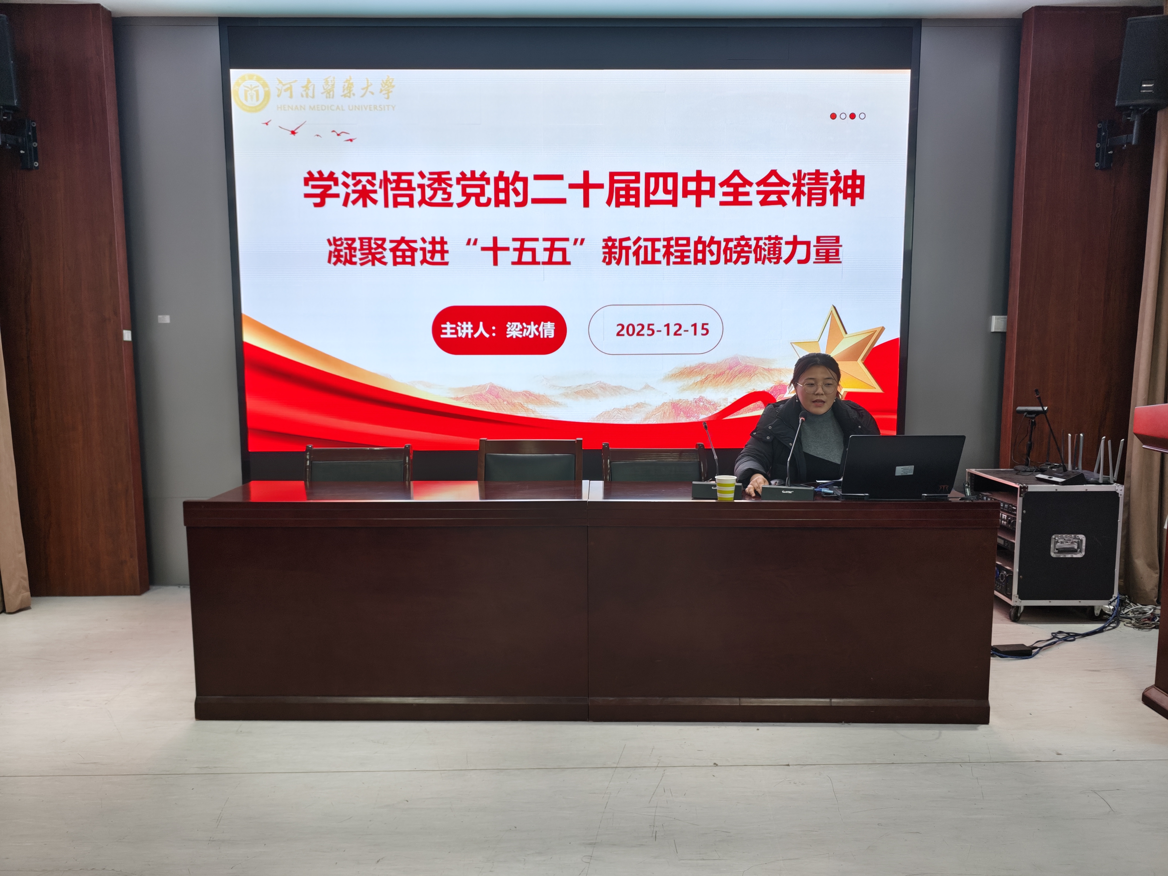 宣讲会上,梁冰倩以“学深悟透党的二十届四中全会精神,凝聚奋进‘十五五’新征程的磅礴力量”为主题,从四个维度系统解读了党的二十届四中全会精神。在“全面把握二十届四中全会的时代坐标与历史根基”部分,她详细阐述了全会的规范名称内涵、召开的关键节点背景、基本概况及核心成果,深入梳理了“十四五”时期我国经济社会发展取得的重大成就,明确了“十五五”时期在基本实现社会主义现代化进程中的历史方位与战略价值,并分析了全会在国际视野下的深远影响。
