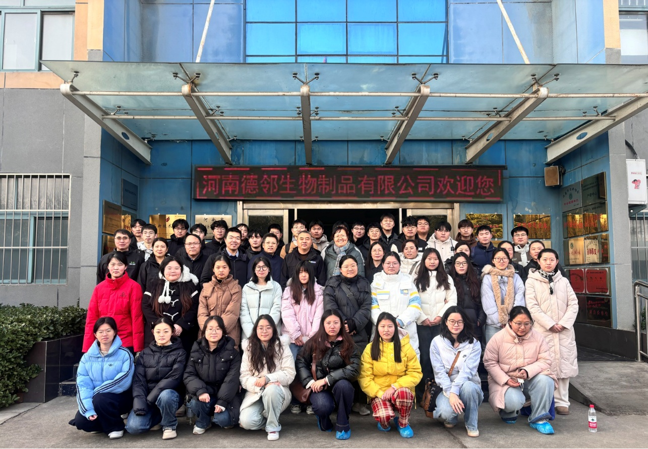 2025年12月24日上午,我院生物工程专业教师及2022级生物工程专业全体学生在副院长周晨妍的带领下,赴河南德邻生物制品有限公司开展集中实践学习,并举行“实践教学基地”授牌仪式。河南德邻生物制品有限公司相关部门负责人热情接待了我院师生。