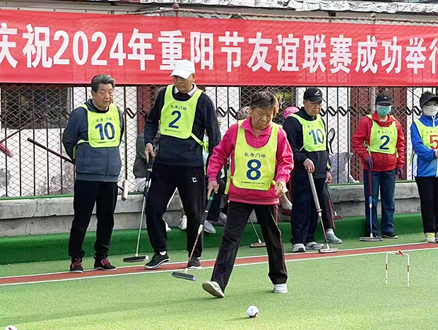 10月10日,我校“九九重阳杯门球联赛”在卫辉校区门球场举行。来自校本部、第一附属医院、第二附属医院7支代表队,50多名退休门球选手欢聚一堂,切磋球技。比赛现场气氛热烈,球员们步伐沉稳,动作娴熟,展现精湛的击球技术和默契的战术配合。他们通过球赛以球会友,共话往昔,展现出了离退休人员积极向上的精神面貌和乐观的生活态度。
