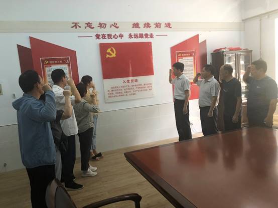 讲课结束后,大家进行了“重温入党誓词”活动。郑会绍书记带领党员面对鲜红的党旗,高举右手庄严宣誓,集体重温对党忠诚的誓言,表达出为党的事业奋斗终身的决心。