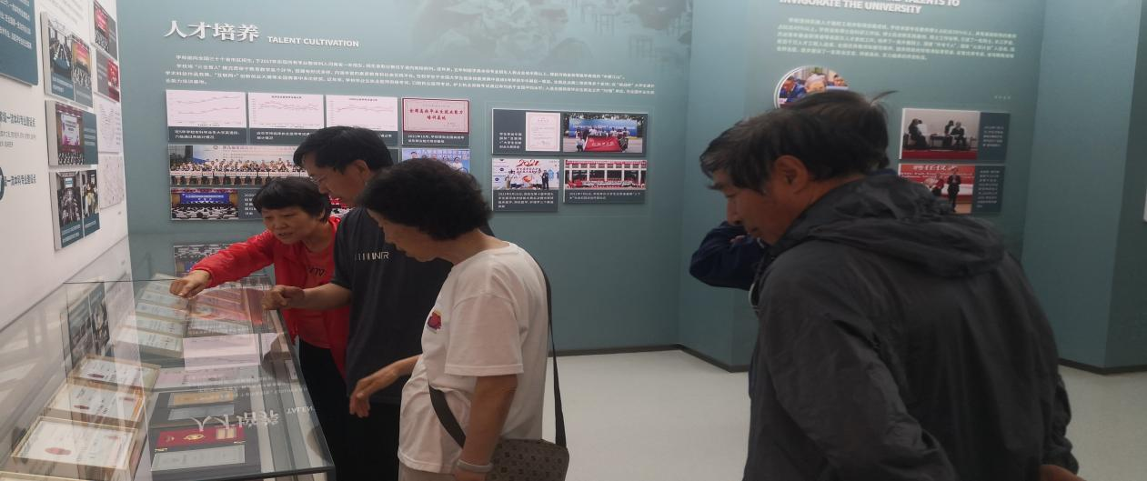 历史厅前,一幅幅黑白照片记录了学校初创时期的艰苦岁月。今年80多岁的原校纪检委党委赵智超,指着上世纪80年代的第一届党代会召开的照片,激动地说:“那时候条件艰苦,开会的党旗是我亲手用塑料泡沫板做成的。看到现在现代化的校园,真是翻天覆地的变化!”