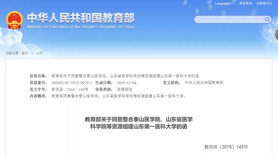 图丨教育部正式批准“山东第一医科大学”组建