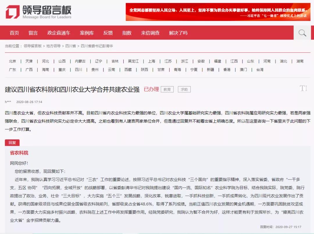 图丨四川省农科院否决与四川农业大学合并的提议
