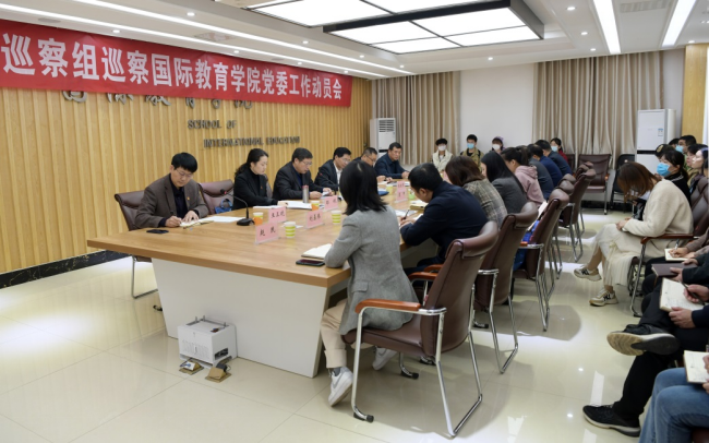 11月3日,我院召开校党委第一巡察组进驻动员会,对本次巡察工作进行安排部署。校党委第一巡察组长侯建国,副组长张献领、郜佩、刘波涛,巡察组全体成员,学院全体班子成员、党支部书记、科级干部、教职工以及学生代表参加本次动员会。会议由国际教育学院党委书记王正晓主持。