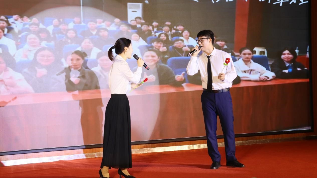 活动接近尾声,由药学院、麻醉学院辅导员和峻极书院学生代表共同带来的改编歌曲《送你一朵小红花(新医辅导员版)》将现场气氛推向高潮,伴随着悠扬的旋律,全场师生手持小红花与台上老师共同合唱,背景视频中辅导员与学生的温暖瞬间,也诠释着他们“人生导师”与“知心朋友”的深刻内涵。