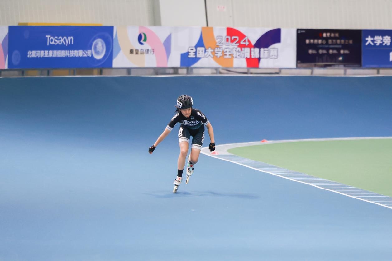 10月17日,在河北对外经贸职业学院举办的2024年全国大学生轮滑锦标赛圆满落幕。本次比赛汇聚了全国各地67所高校、共计200多名运动员同场竞技。其中,我院学子李沛娴共参加2个大项、4个小项的比赛,并获得女子甲组200米计时赛第三名、500米+D争先赛第四名和速度过桩第四名。