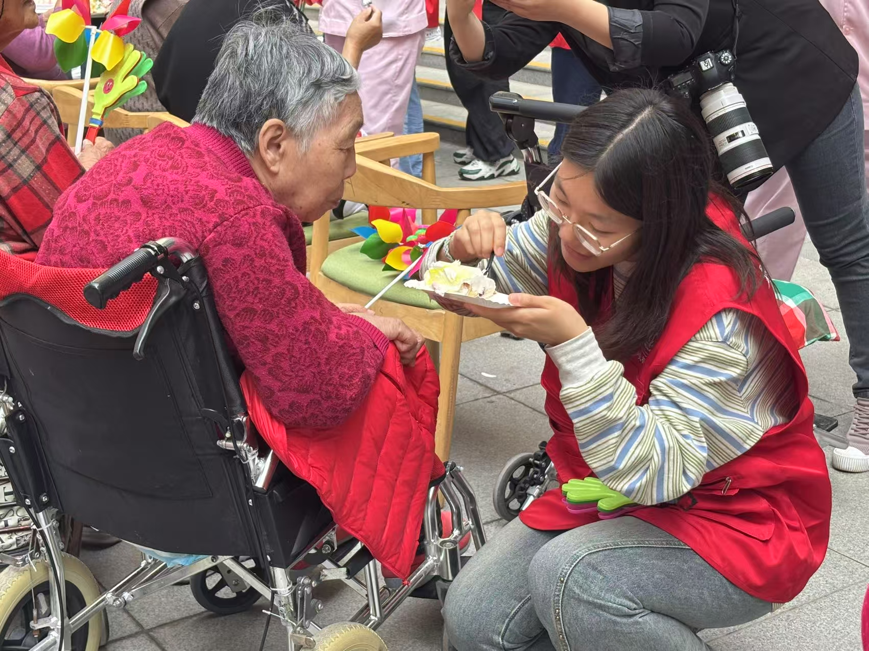 文艺演出结束后,志愿者们为老人们举办了温馨的集体生日会。同学们细心地为老人佩戴生日帽,准备适合老年人食用的低糖蛋糕,并齐唱生日祝福歌。李奶奶感动地说:“孩子们这么用心,让我们感受到了家人般的温暖,这个生日特别难忘。”