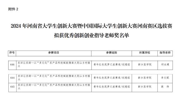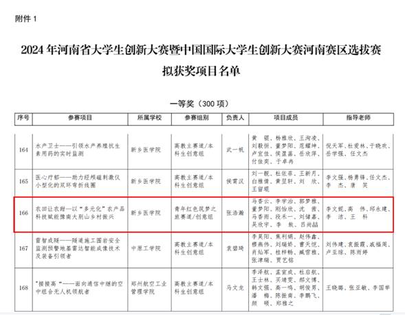 近日第九届中国国际大学生创新大赛河南赛区选拔赛暨2024年河南省大学生创新大赛落下帷幕,我院共有4项参赛作品获评省级奖项,3位指导老师获评省级优秀创新创业指导老师荣誉称号,5位指导教师获评华亿在线体育(中国)官方网站第九届中国国际大学生创新大赛优秀指导教师荣誉称号,书院荣获华亿在线体育(中国)官方网站第九届中国国际大学生创新大赛优秀组织奖。