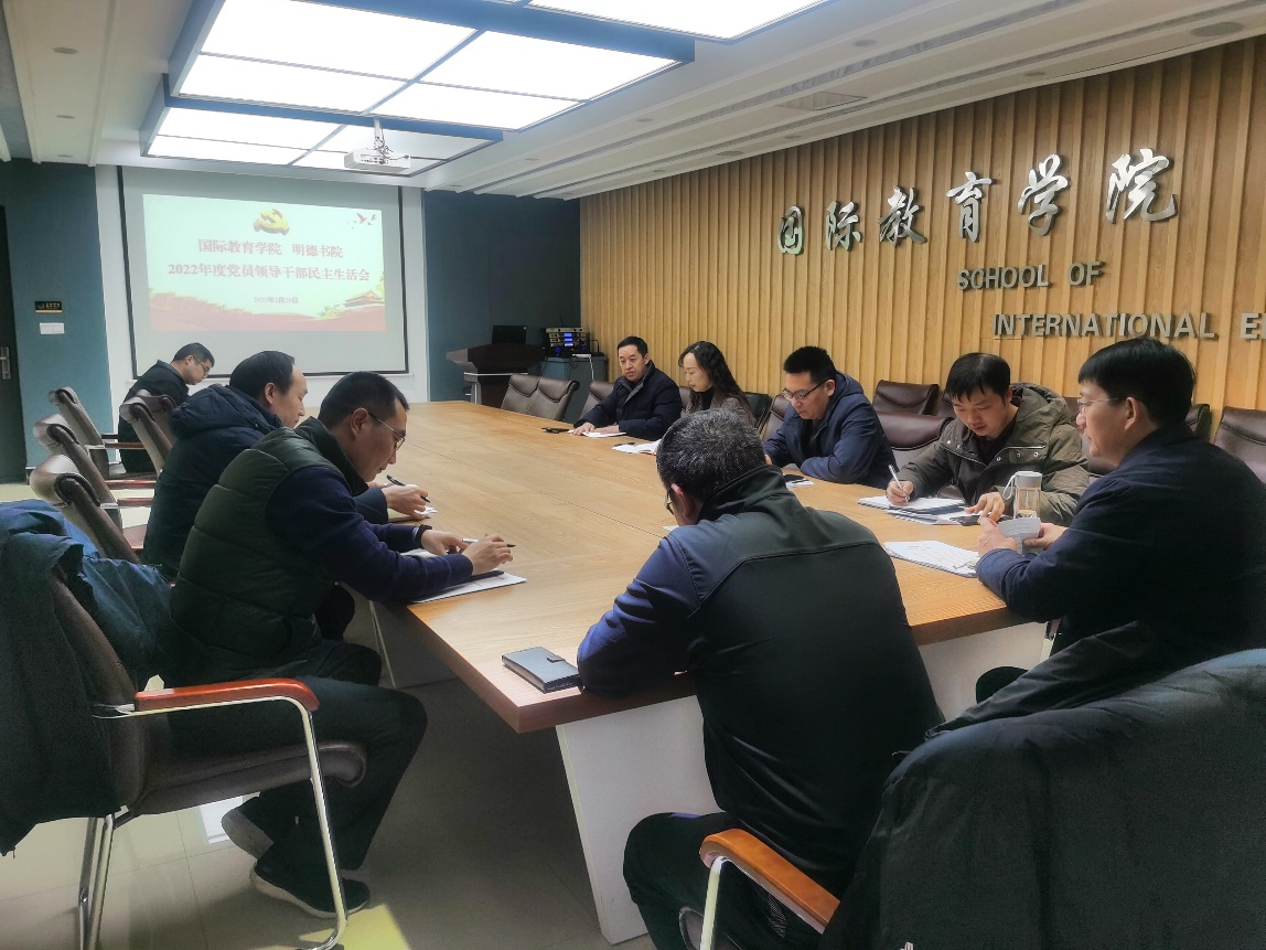 2月20日上午,国际教育学院、明德书院在国际教育学院会议室召开2022年度党员领导干部民主生活会。党委书记王正晓主持会议,全体班子成员参加会议。
