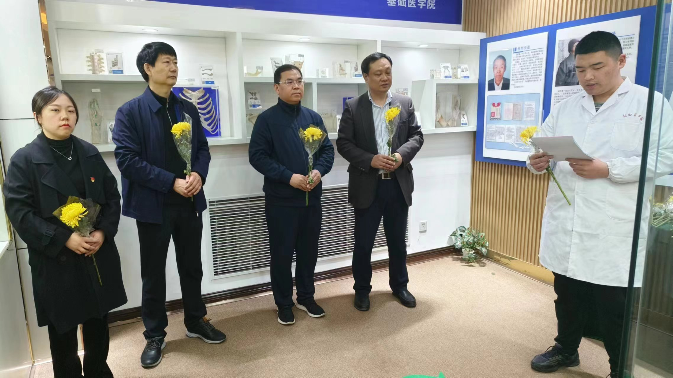 4月1日上午,菁英医师班全体学生赴人体科学馆缅怀纪念无言良师,教务部部长林俊堂、明德书院党委书记王正晓、河南省组织再生实验室副主任王现伟以及明德书院相关负责人参加活动。