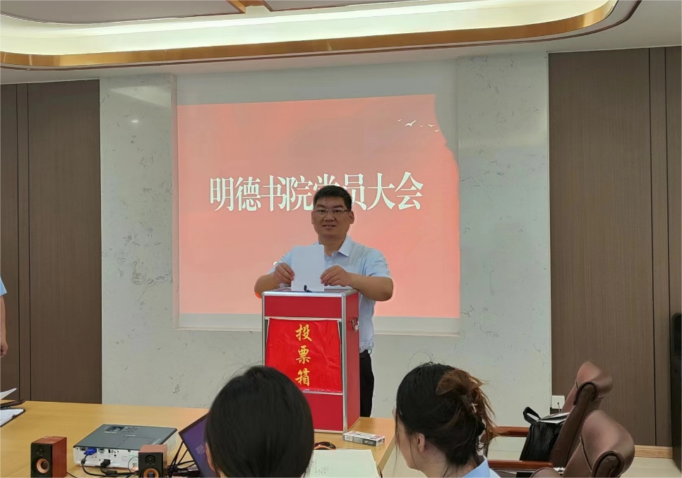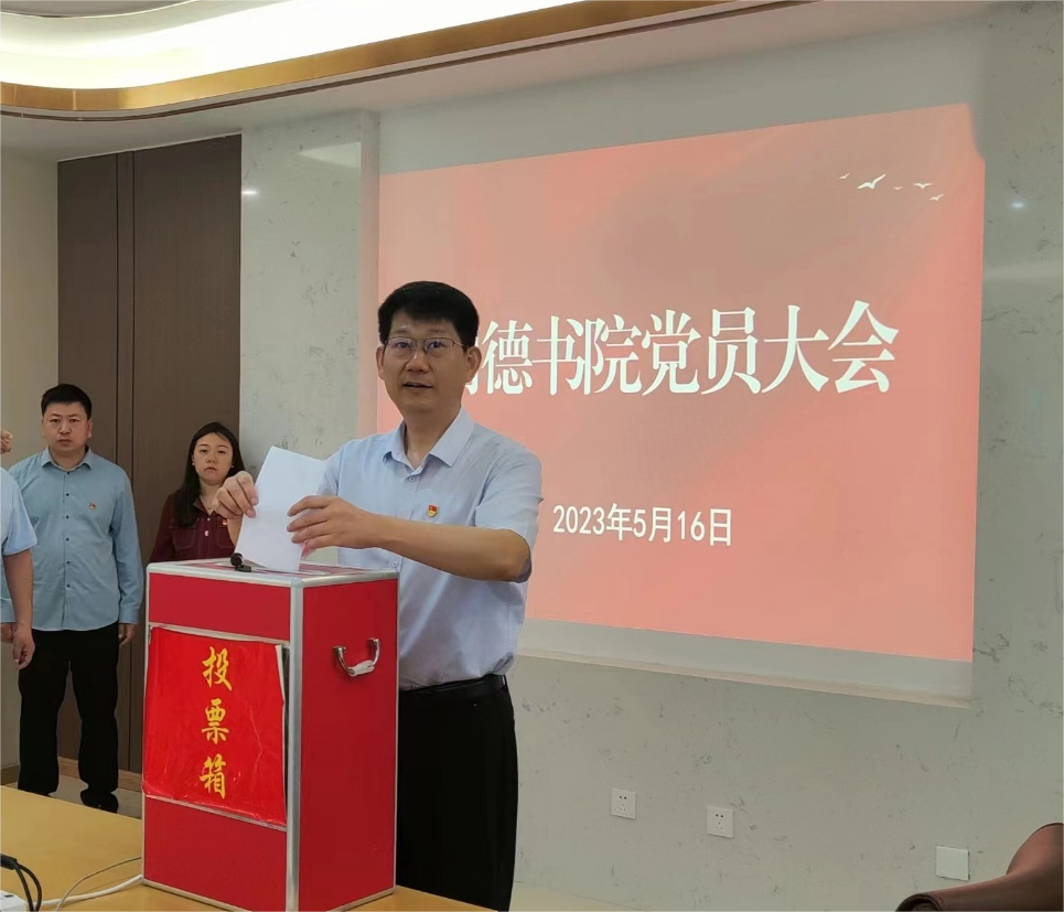 5月16日上午,明德书院在会议室召开党员大会,选举增补3名党委委员,全体职工党员和学生党员代表参加会议。大会由书院党委书记王正晓主持。
