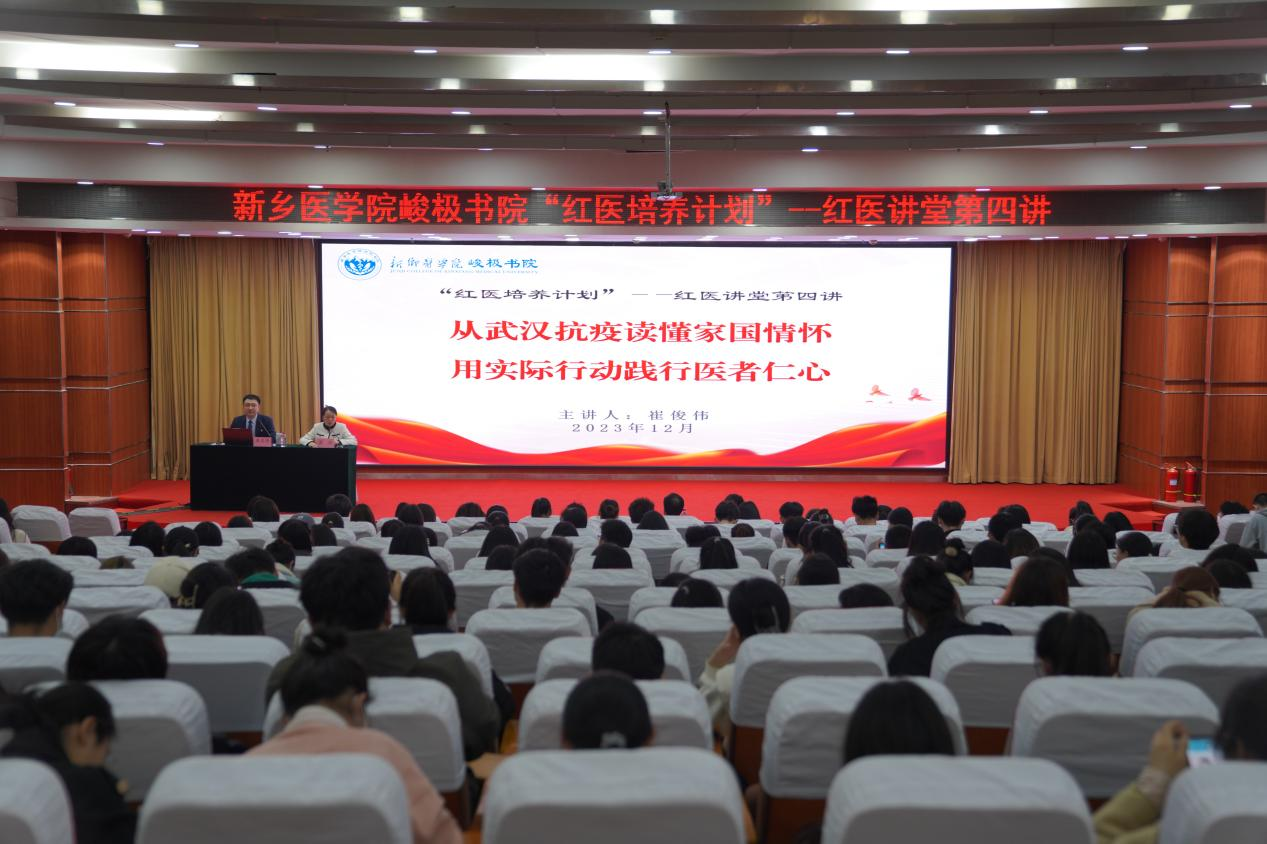 为深入学习宣传贯彻习近平新时代中国特色社会主义思想和党的二十大精神,落实立德树人根本任务,将红医精神融入峻极书院人才培养全过程,厚植医学生家国情怀,“峻极书院红医培养计划”之“红医讲堂”第四讲于12月8日晚7点在博学楼第一报告厅举办。本次活动由河南首批援鄂医疗队成员、华亿在线体育(中国)官方网站第一附属医院援鄂医疗队队长崔俊伟老师主讲,峻极书院副院长赵春澎、辅导员李佳音及各年级学生代表参加。活动由峻极书院团委书记高伟主持。