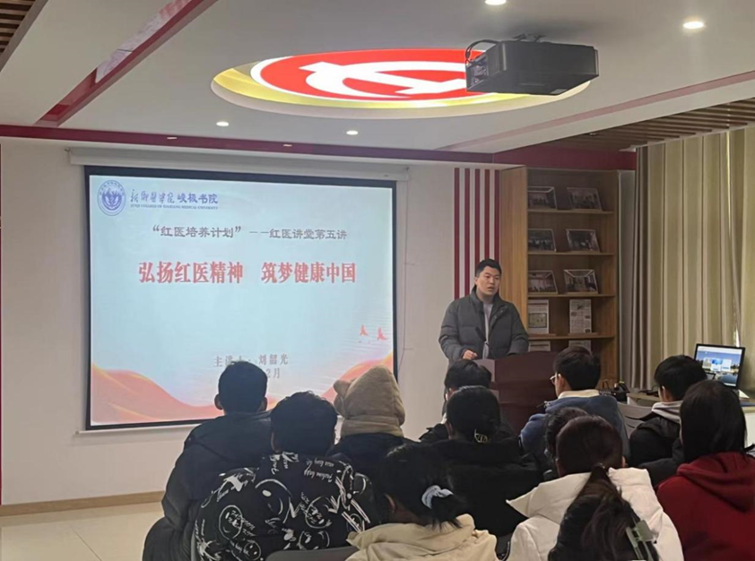 为进一步学习红医精神、坚定理想信念,12月19日,“峻极红医培养计划”之“红医讲堂”第五讲在峻极书院思政影厅召开,我院副科级辅导员刘韶光老师担任主讲人。