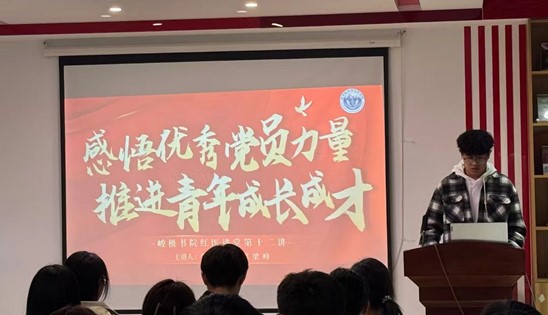 为深入学习贯彻习近平新时代中国特色社会主义思想,感悟优秀党员榜样力量,推进青年成长成才,10月29日我院红医讲堂第十二讲在峻极书院思政影厅举办,峻极书院学生第二党支部优秀学生党员代表、2023届团委组织部责任主席梁峰担任主讲人。