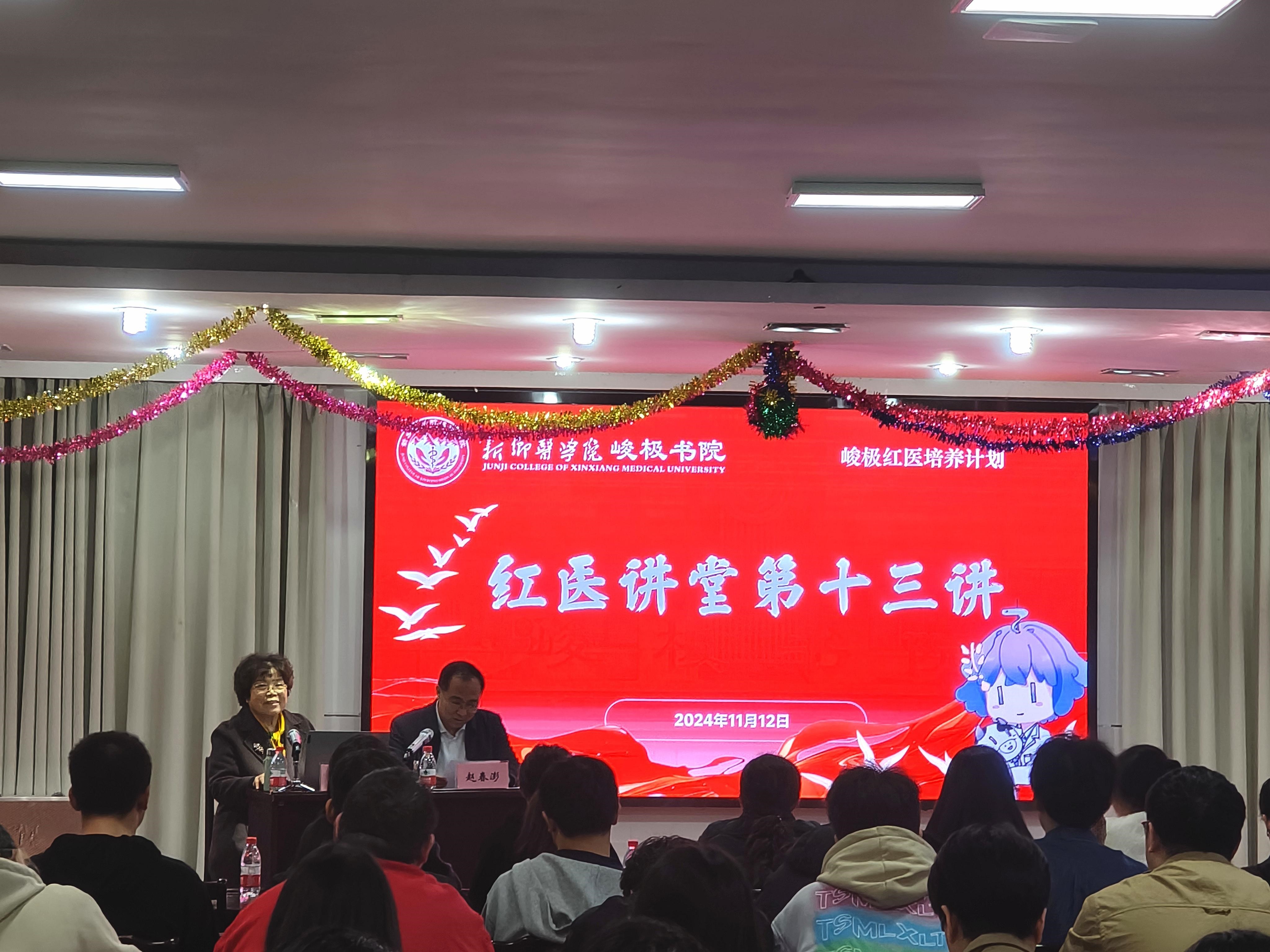 为贯彻落实党的二十届三中全会精神,落实立德树人根本任务,11月12日,我院“红医培养计划”之“红医讲堂”第十三讲《认识自我,快乐成长》在离退休职工中心多功能厅举行,此次活动邀请我校离退休教师张改叶教授主讲,我院副院长赵春澎主持,我院团委书记高伟和近100名学生聆听了讲座。
