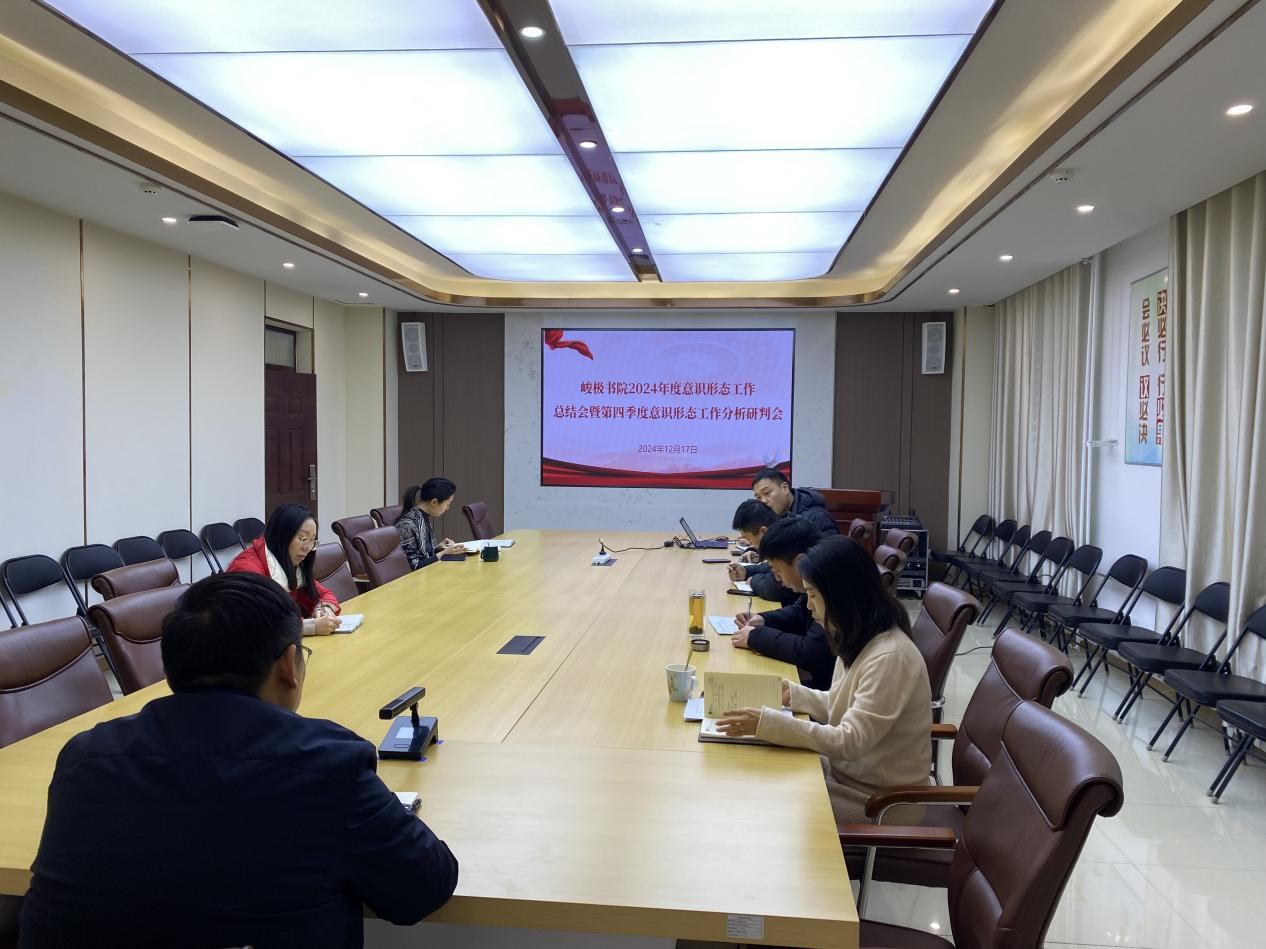 12月17日,我院在会议室召开2024年度意识形态工作总结会暨第四季度意识形态工作分析研判会。会议由书院党委书记、院长邱永建主持,党委副书记赵民、副院长赵春澎及全体教职工参加会议。