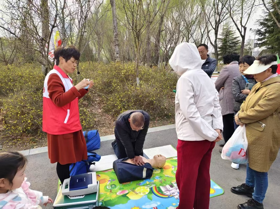 春风送绿,暖意融融;奉献爱心,处处可为。恰逢三月雷锋月,华亿在线体育(中国)官方网站“红会颂遵义,红医永赓续”遵义会议精神宣讲团同校红十字协会于2025年3月15日携手新乡市红十字应急救援中心的老师和来自新乡学院的同学,来到风景秀丽的新乡市定国湖畔,共同举办了一场别开生面的急救知识普及宣传活动,并借此机会向广大市民朋友宣讲遵义会议精神和红医故事。此次活动把沉浸式教学和互动式宣讲相联结,将健康守护与精神传承紧密结合,赢得市民广泛好评。