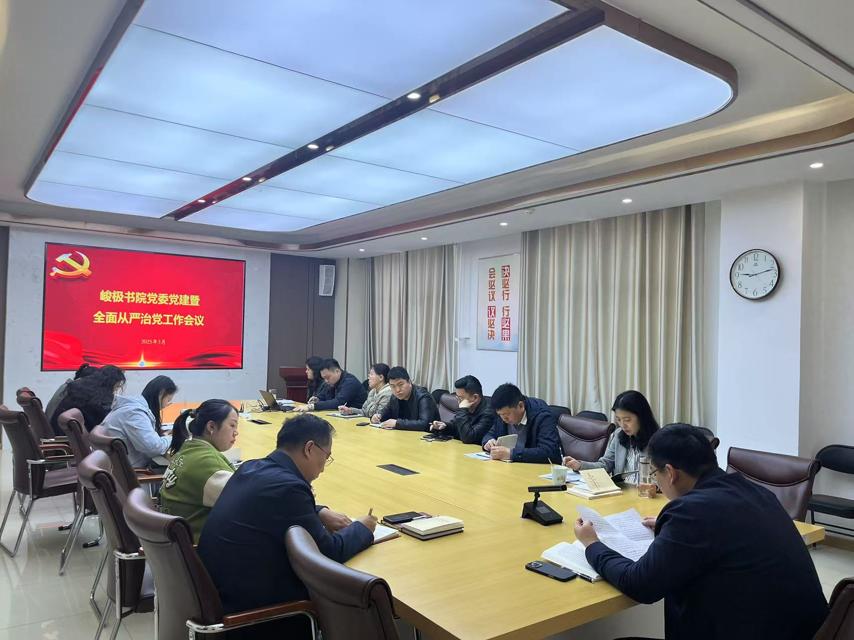为深入贯彻落实学校党建工作要求,扎实推进书院党建工作高质量发展,2025年3月28日,峻极书院党委在8104会议室召开党建暨全面从严治党工作会议。书院党委书记邱永建、党委副书记赵民、副院长赵春澎、全体职工参与了此次会议。