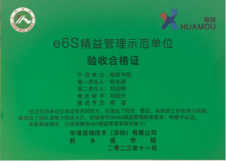 开展e6S是实现学校由传统管理到现代管理转变的客观需要,将e6S精益管理持续深入到学生学习、工作、生活的每一个角落,注重示范作用和实践活动的开展,促使书院学生在践行e6S中养成良好的行为习惯、遵规守纪的作风和钻研学习的素养 。