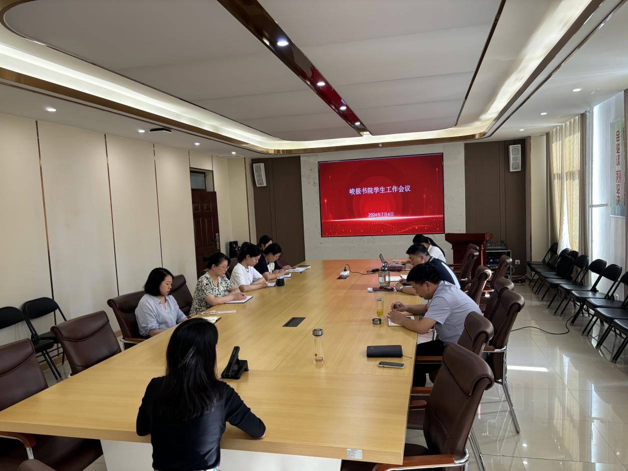 7月4日,我院在会议室召开学生工作会议,研判当前学生工作要点,安排部署下一阶段学生工作。会议由党委副书记赵民主持,书院全体辅导员参加本次会议。
