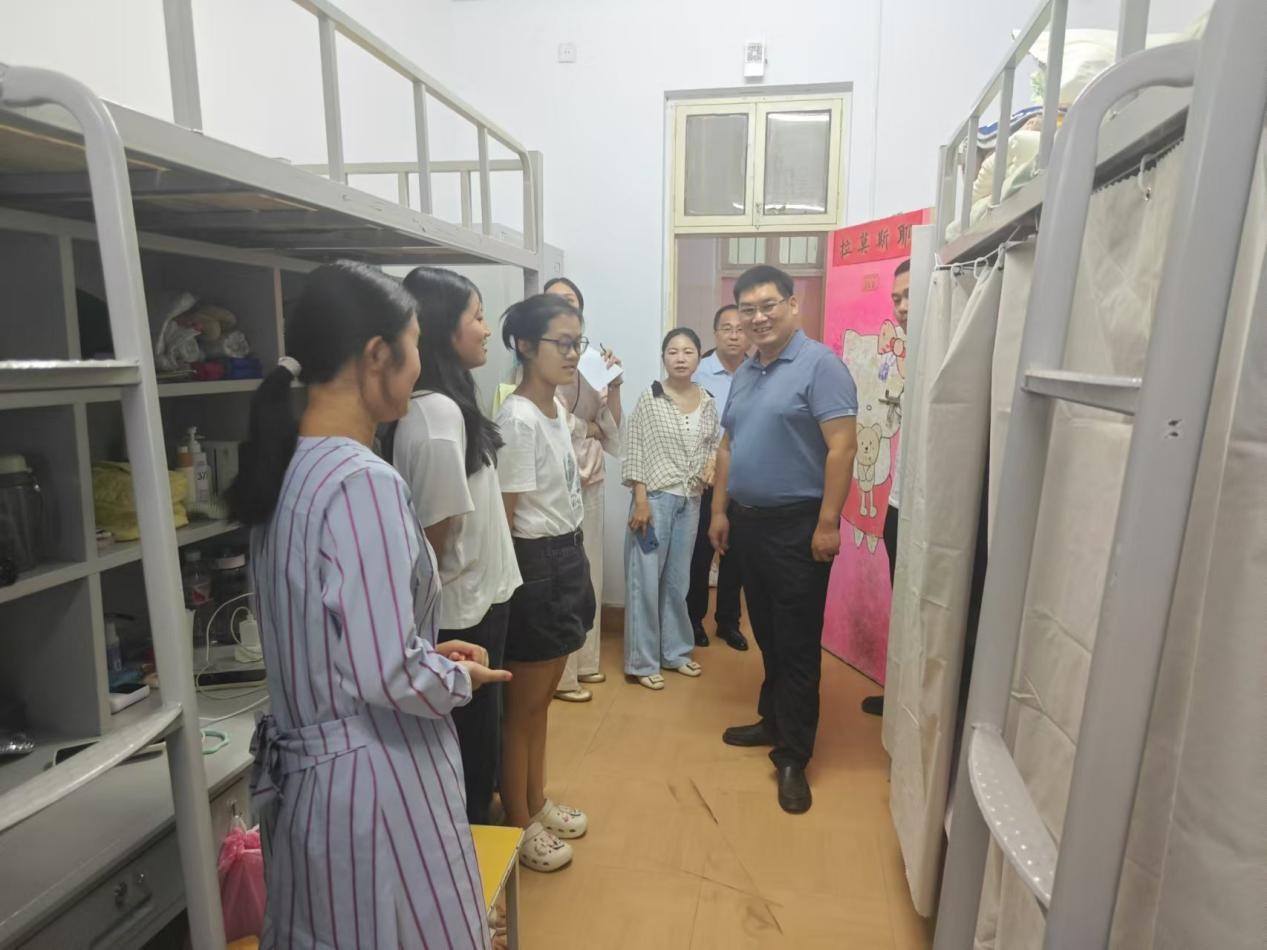书院领导一行来到新生宿舍,与同学们亲切交谈,仔细询问他们入学报到是否顺利、对新环境是否适应、生活上是否有困难等问题。新生们面对领导的关心,纷纷表达了自己对大学生活的憧憬和期待,也分享了初来乍到的感受。