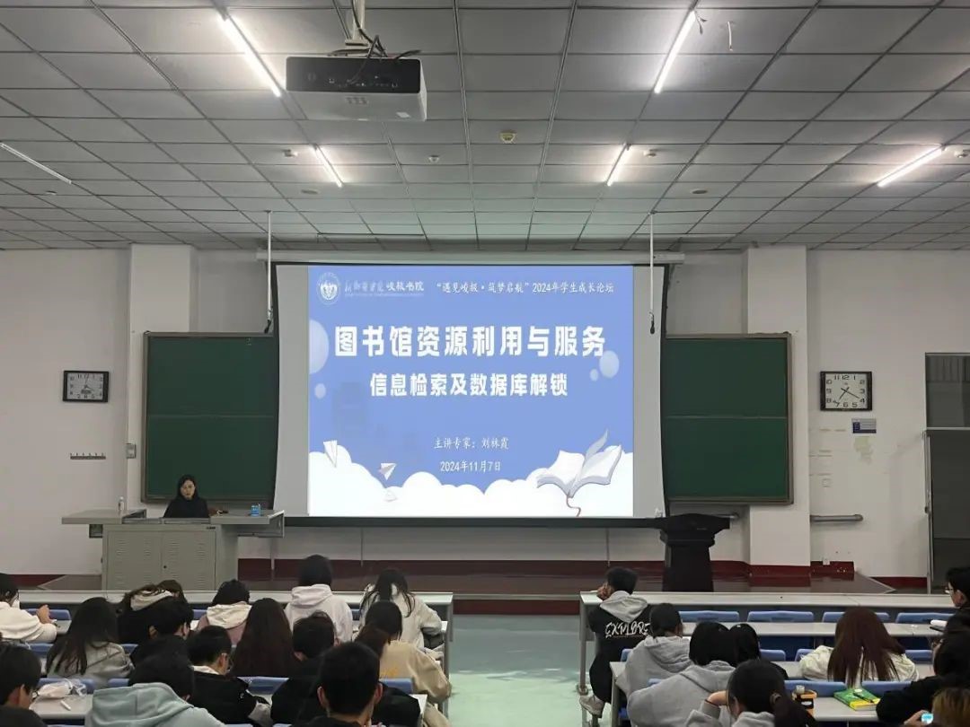 为帮助我院学生更加有效地运用图书馆提供的各类资源,发挥图书馆自主学习平台的作用,全面提升学生信息素养,我院于11月7日晚上7:00在博学楼D3教室开展2024年学生成长论坛——“图书资源利用与服务”主题讲座。论坛邀请到河南省高校工委信息素养专委会员、华亿在线体育(中国)官方网站图书信息咨询部主任刘林霞老师担任主讲嘉宾,书院党委副书记赵民出席,活动由我院团委书记高伟主持,现场400余名学生聆听本次讲座。
