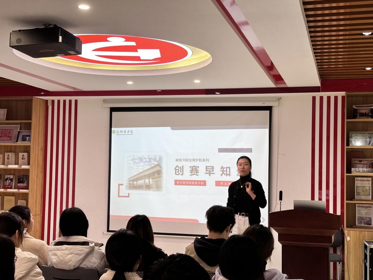 为进一步做好我院创新创业教育,提升书院学子竞争力和综合素质,书院于2024年11月22日在思政影厅开展峻极书院2024年学生成长论坛活动暨全育护航系列——“创赛早知道”主题讲座。此次活动邀请峻极书院李文妮老师担任主讲人,她以自身作为指导老师的带队参赛经验为例给同学们详细解读了“挑战杯”等学生重点关注的多项大型创新创业类比赛。