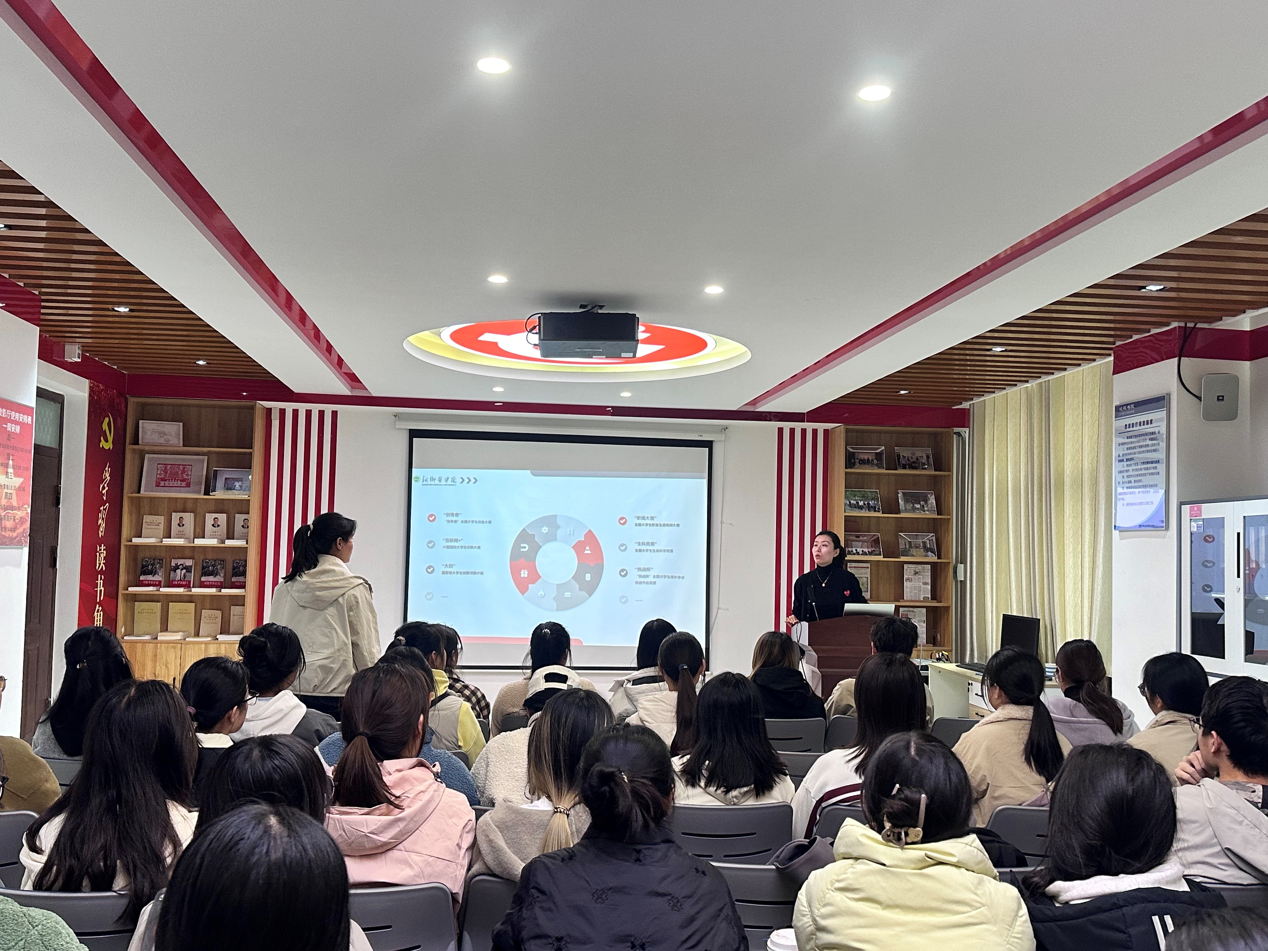 随后,李老师鼓励同学们要善于在生活中找到切入点,制定清晰的目标,确定实施方案并积极采取行动。除此之外,老师还将各类型创赛的时间给同学们做了图表说明,让同学们对创赛准备有了更明确的规划。