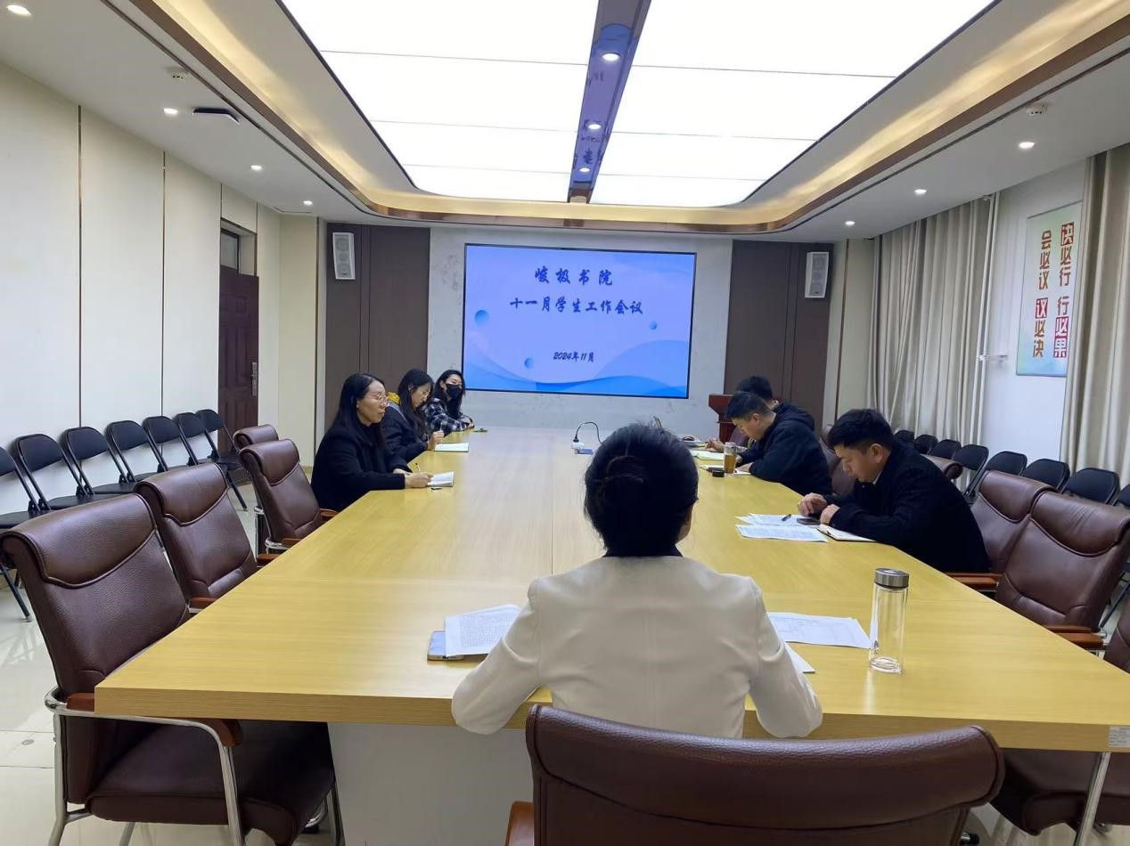 11月12日,我院在会议室召开学生工作会议,研判部署近期学生安全稳定工作。书院党委副书记赵民、全体辅导员参加会议。