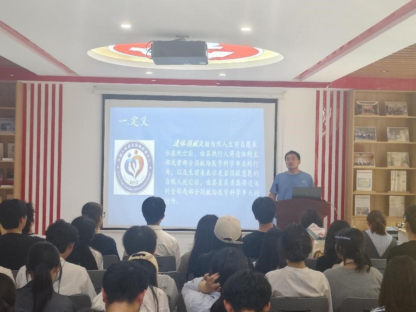 为响应我校“大爱传递生命永续”遗体器官捐献暑期社会实践活动号召,确保我院相关工作顺利开展,6月21日,我院在思政影厅举行“峻极书院—全育护航系列讲座:大爱传递、生命永续”遗体器官捐献暑期社会实践活动宣讲会。本次讲座由书院朋辈导师与学生会成员共同组织,邀请到我校基础医学院大体形态学实验室主任陈志国为大家普及相关知识。