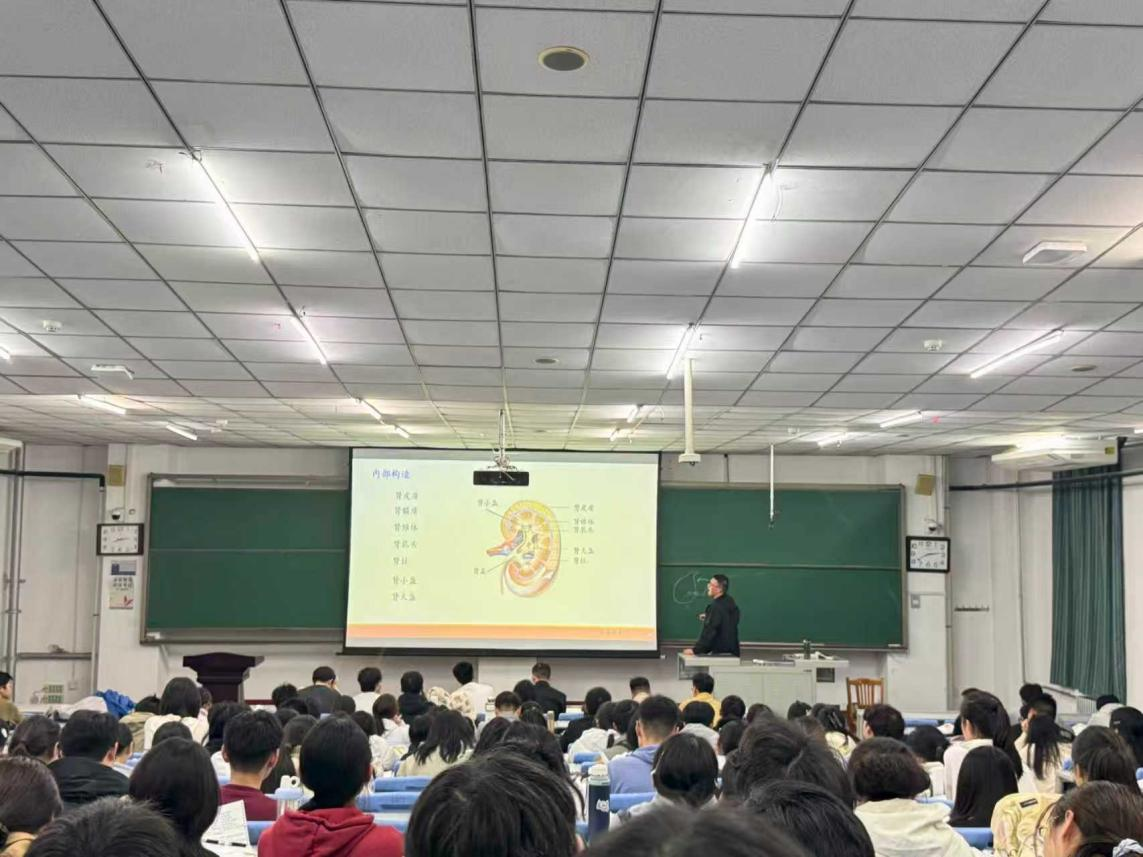 活动当晚,同学们携带课本笔记提前到达、有序进场。两位高年级优秀学生作为朋辈导师代表,从内脏学总论、消化系统等讲到心血管系统,将复杂的解剖学知识抽丝剥茧,用通俗易懂的语言、巧妙的学习方法为新生们答疑解惑。