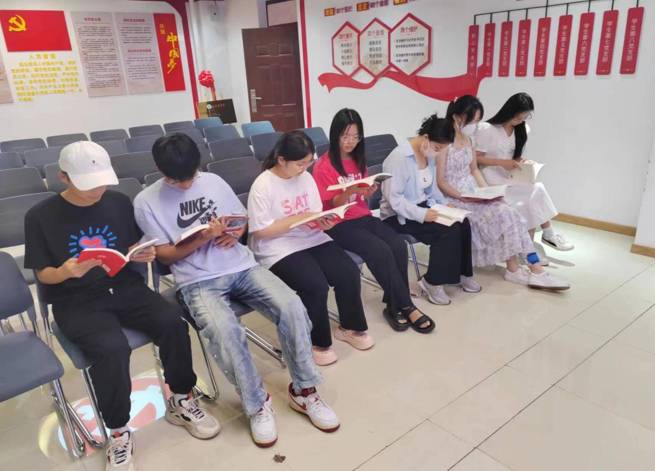 我院采用“线上+线下”模式学习贯彻习近平新时代中国特色社会主义思想,于“读书角”开展“青年党员理论读书会”、“学习二十大,永远跟党走,奋进新征程”主题团课交流研讨等理论学习活动,党员代表、团员代表、学生代表以及入党积极分子来此进行相关阅读,展开学习讨论,过程如火如荼。每一次的学习,都让学生对习近平新时代中国特色社会主义思想有了更深层的认识,其中陈明宇同学表示:“作为新青年的我们,应不负时代使命,脚踏实地,为国家未来发展贡献一份力量”。