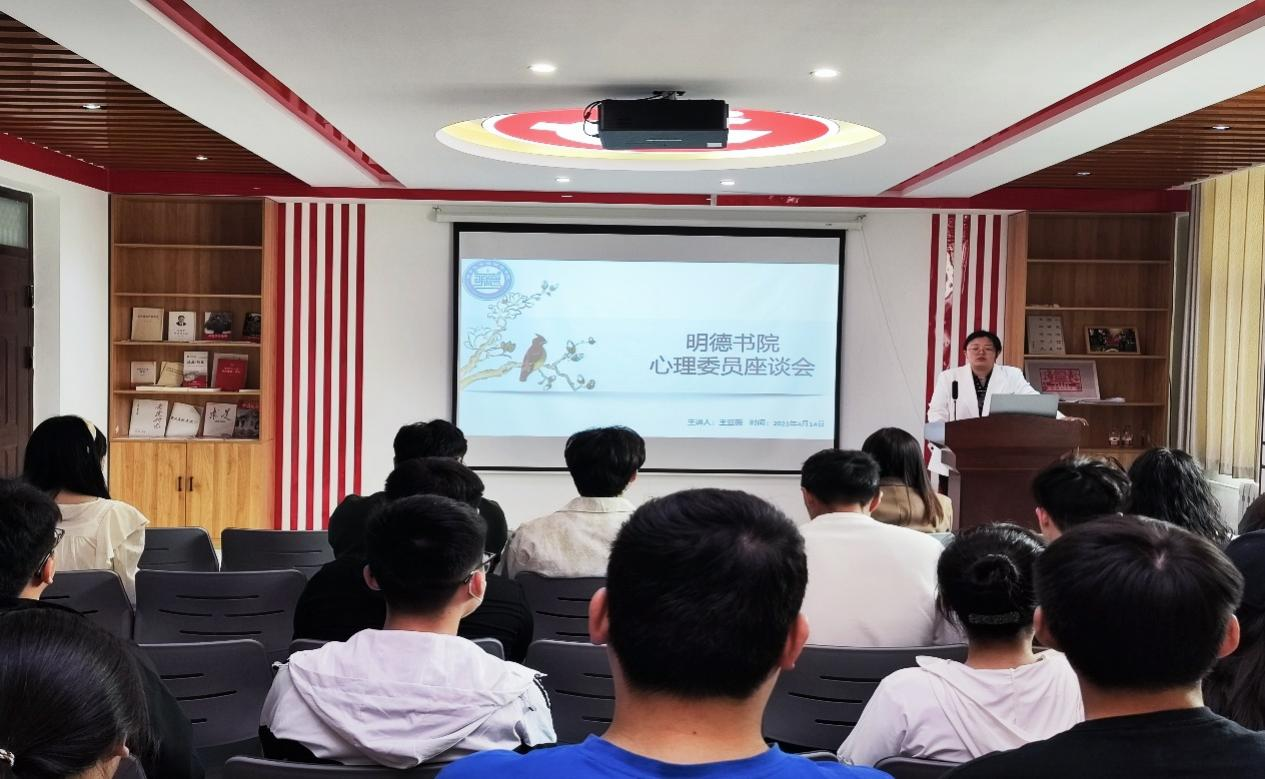 为深入了解学生的心理活动,更好地开展大学生心理健康教育工作,我院于2023年5月上旬持续开展心理委员座谈会。座谈会由王亚薇老师主持,明德书院全体在校心理委员参与。