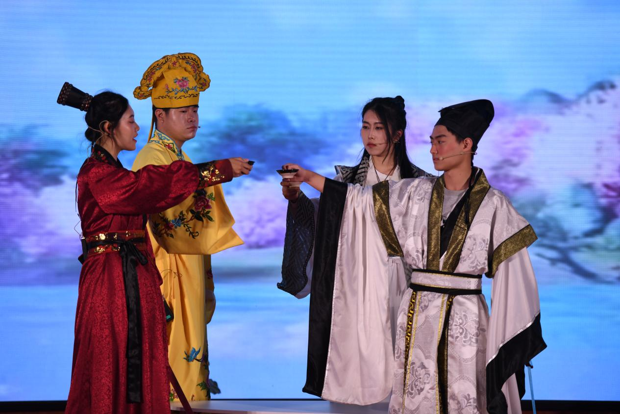 一曲《万疆》带领本场展演走向高潮,明德书院原创诗文朗诵和歌曲的完美结合,勾勒出祖国大好河山的盛世景象;留学生太极拳表演《浩荡乾坤》打出了中国气势,让在场观众感受到中华文化的博大精深、包容并蓄;改编舞台剧《新桃花源记》回顾历史,穿越时空,古代四位伟人齐聚一堂,诉说家国之情,感悟时代变迁,激励新时代青年应投身时代发展浪潮,贡献自己的力量。