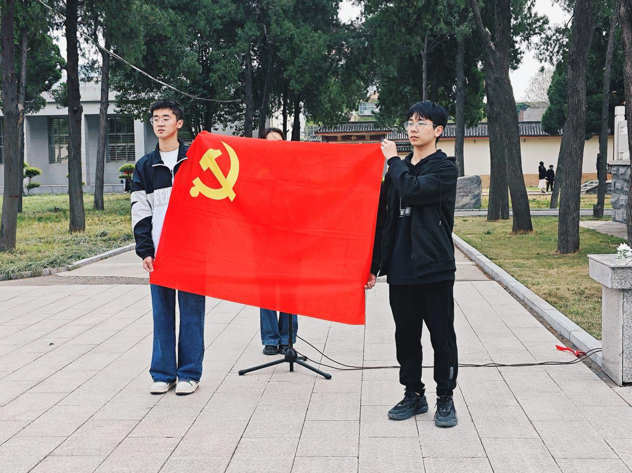 首先,李强副书记与周少华副主任向烈士公墓敬献花篮并整理挽联。然后,师生代表满怀着崇敬大声朗诵入党誓词。之后,全体肃立,向长眠在此的英烈默哀一分钟,并鞠躬致敬。