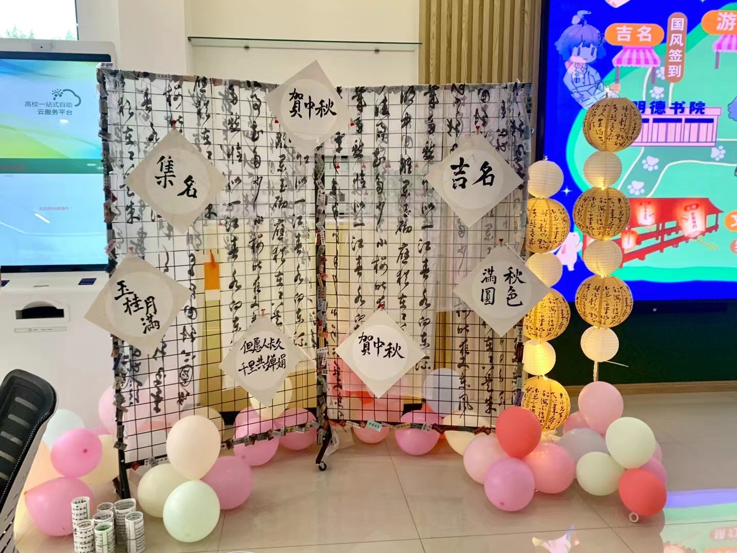 月是故乡明,情是中秋浓。为弘扬和传承中华民族传统节日文化,缓解中秋前夕新生思乡之情,提升学生感恩意识,积极培育和践行社会主义核心价值观,明德书院于9月28日晚在书院一楼功能区举办“明德 中秋奇妙游”文化体验游园会,书院领导老师陪伴学生共度美好团圆时光。