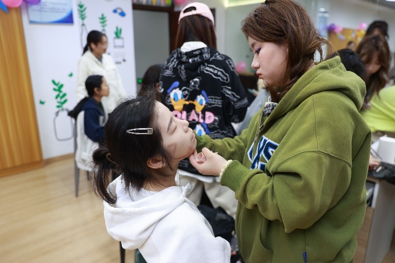 活动当天,来自美妆组的同学充当化妆师,为体验化妆的同学带来了各种化妆工具和拍照道具并进行了化妆技巧的分享。同学们挑选喜欢的妆容,“化妆师”为同学们进行美丽的改造。从日常妆容到令人眼前一亮的造型,“化妆师”们展现出多样的化妆技术。化妆环节欢声笑语,有同学们对妆容的提问,有化妆师的解疑,展现了同学之间的互动与友爱。