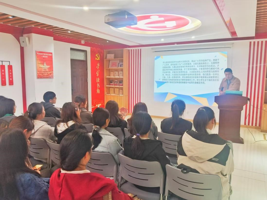 讲座上,刘韶光老师首先强调了学生组织是由广大同学选举产生,有着受命于广大同学,服务广大同学的责任与使命,他们既要服从班级学生管理,又要积极协助班委开展班级工作,树立学生会干部的良好形象。
