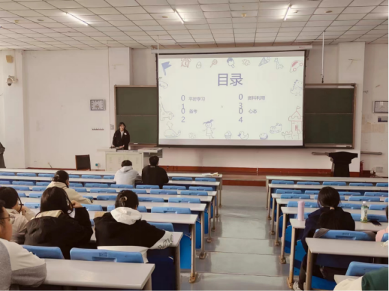 紧接着,2022级影像8班闫荣赐同学从平时的学习习惯、备考计划、如何合理利用学习资料以及如何调节学习过程中的心态四个方面进行讲述,强调了笔记的重要性,呼吁大家一定不能囫囵吞枣浪费时间。