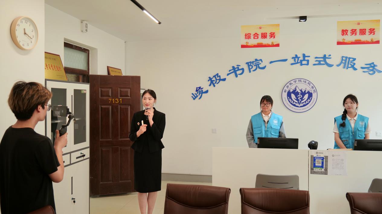 随后,峻极书院辅导员李佳音带领大家参观了书院的社区建设,从书院“素质培养体系”和“管理服务体系”两大体系出发,参观了书院一站式学生服务中心、思政影厅、录播室、排练厅、阅览室、学生宿舍等地。在讲解过程中,随机采访到了菁英医师班获得河南省首届职业生涯规划大赛铜奖的王志宝同学,菁英医师班团支书李培华同学,获得“外研社·国才杯”“理解当代中国”写作大赛国赛铜奖、2023年全国大学生科技词汇大赛一等奖的孙萌钦同学以及以第一作者发表SCI二区论文的吉祥雨同学,学生根据自己在学校中的亲身经历,与直播中的考生及家长分享自己在学校的学习心得。