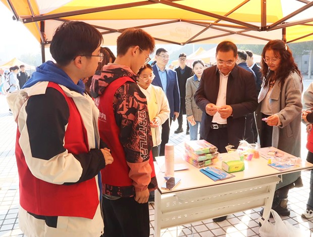 开幕式结束后,林俊堂一行来到活动区,与学生一起参与活动,并亲切交流。活动采用设立关卡与完成任务的方式,分设“职业·初见倾心”“心灵世界”“筑梦飞翔”等8个活动主题共计16个游戏关卡,将职业生涯规划教育、心理健康教育和资助政策宣讲元素融入其中,使学生通过参与游戏完成职业生涯规划和心理健康教育,了解学校的资助政策。活动首日吸引1000余名学生到场参与,现场气氛热烈。