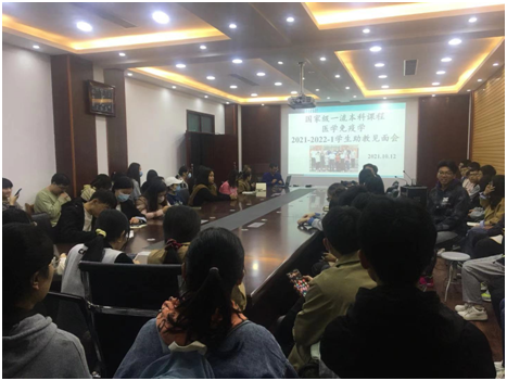 免疫学系积极按照学校及学院的安排,开展线下课堂教学,为了更好的了解学生前期线上教学的学习效果,以及对医学免疫学课程的授课建议,我系于10月12日晚上7:00,安排了授课教师与学生助教的第一次见面会。会议由学系主任赵铁锁主持,全体授课教师参加了本次见面会。会上,学生助教针对各班的前期学习状态,以及今后的学习安排等与老师进行了讨论。每位老师也分别对学生提出的教学意见进行了及时解答。