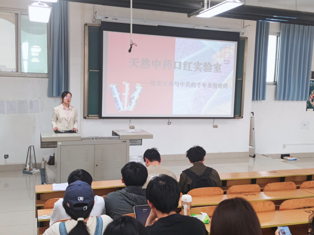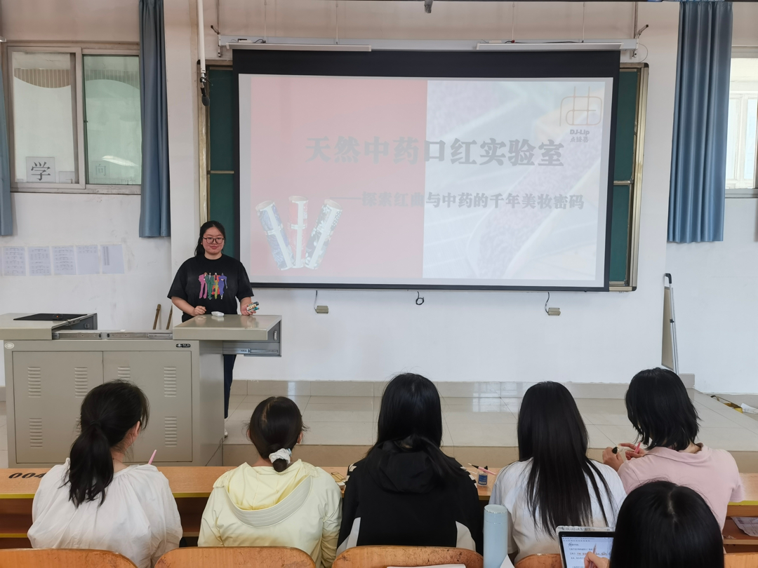 2025年4月17日上午,一场别开生面的传统文化体验活动在卫辉校区2116教室拉开帷幕。国家级大创项目“点绛唇”团队主办的“点绛唇:天然中药口红实验室”古法口红调研推广活动吸引了240余名师生参与。活动以“传承非遗技艺,探索美育创新”为主题,通过理论讲解、实践体验和调研反馈三个环节,全方位展现了传统口红的制作技艺与文化内涵。