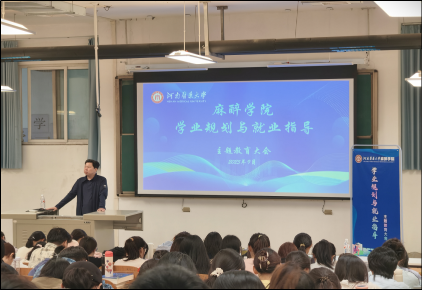 为引导学生明确学习目标,科学合理规划未来,9月20日下午,麻醉学院于卫辉校区1206教室召开“学业规划与就业指导”主题教育大会。麻醉学院党总支副书记王琰、学生工作办公室副主任何昊及2022级麻醉专业全体学生参加本次活动。会议由麻醉学院党委总支副书记王琰主持,现场座无虚席,气氛热烈。