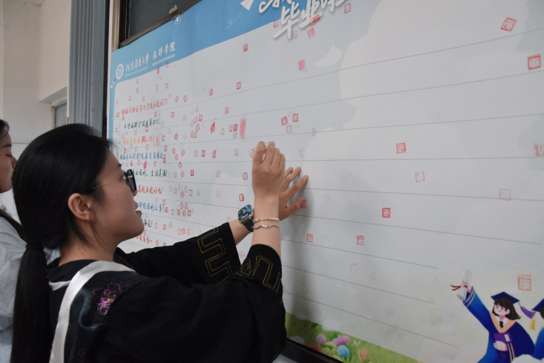 欢送会第四项,是饱含深情的“烙印芳华”仪式。学院为每位毕业生精心定制了一枚刻有名字的专属毕业印章,同学们依次上台,郑重地将印章蘸上特制的印泥,在黑板上盖章留念,一枚枚鲜红的印记,不仅镌刻着个人的名字,更烙印下五年的青春足迹与对麻醉事业的初心承诺。