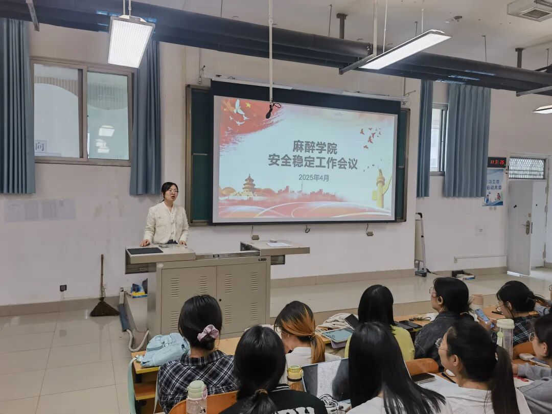 为进一步强化校园安全管理,筑牢师生安全防线,麻醉学院在卫辉校区 1206教室开展麻醉学院安全稳定工作会议。学工办副主任何昊、辅导员刘慧仿以及全体麻醉学生出席讲座。