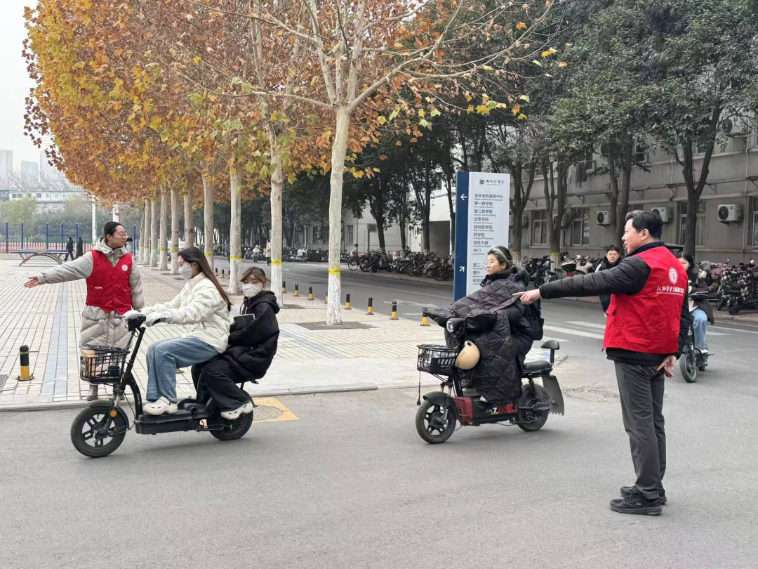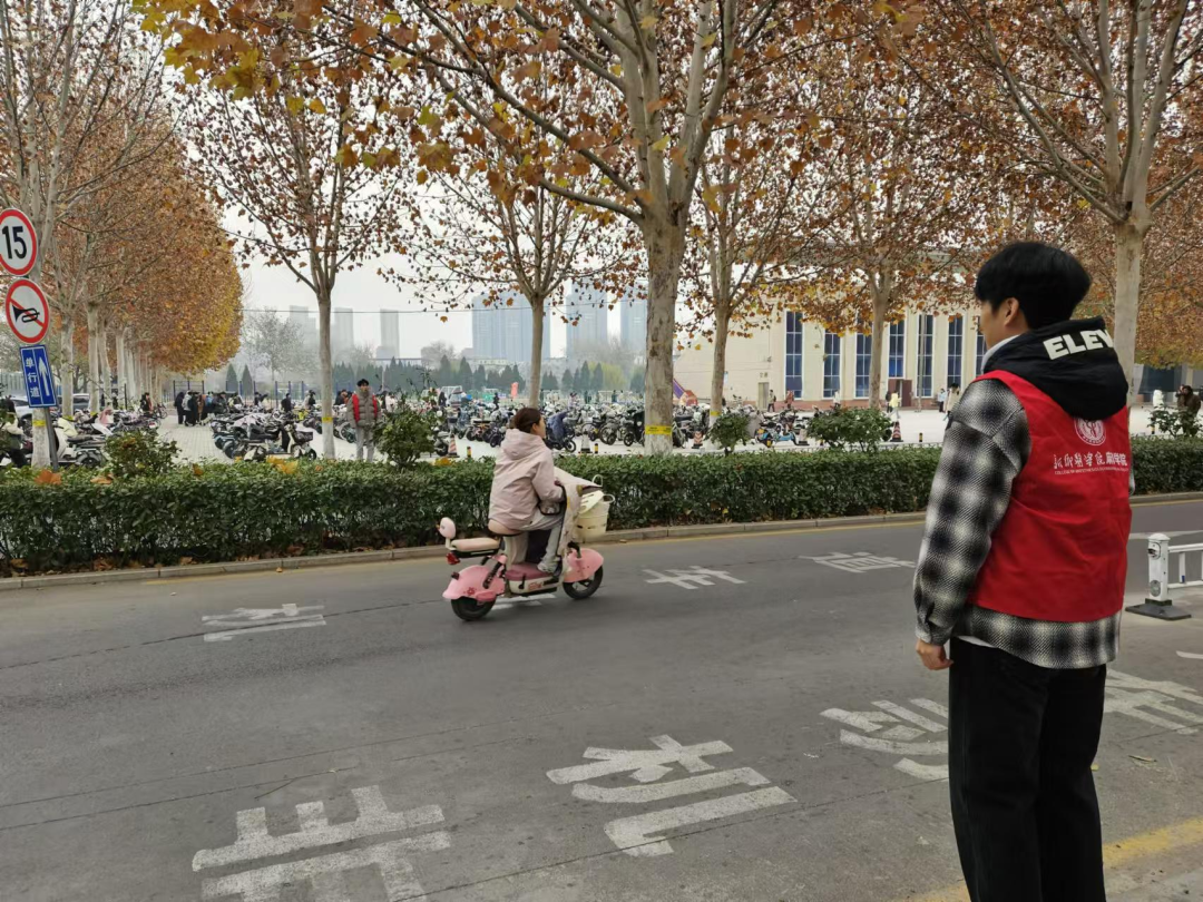 活动期间,他们身穿志愿服,积极指挥交通,对部分同学不佩戴头盔以及不走非机动车道等违反交通规则的行为,他们积极用手势加以引导,告诫同学们在骑车过程中要遵守交通规则,遇到复杂的路况要主动减速慢行,礼让行人。停车时,将车辆停放到指定停车区域,不随意占道停放。同时提醒步行的同学们在行走过程中不嬉戏打闹、不奔跑,集中注意力观察周围路况,确保安全后再快速通过。