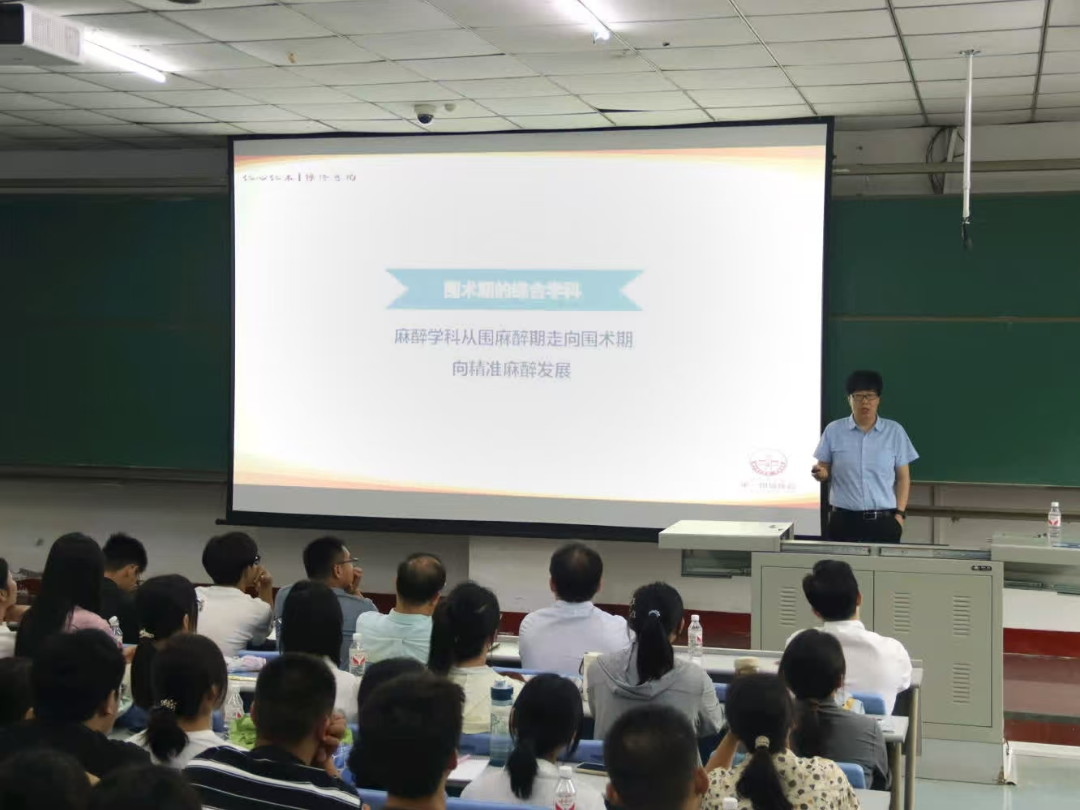 下午,薛富善教授主讲题目为《认一事做一生,做优秀的临床麻醉医生》,课堂上,薛教授与同学们一起感悟生命之重、医学之大,他强调学生们要将医生作为一生的“志业”经营,立志成为医德高尚、医术精湛的优秀麻醉医生,在保障人民健康的征途上,绽放无限可能与精彩。